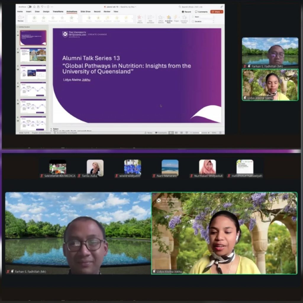 Alumni Talks Series 13 yang dilaksanakan Sabtu, 6 September 2025 kali ini mengambil tema ” Global Pathways in Nutrition : Insights from the University of Queensland “.